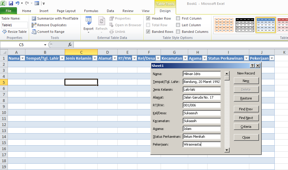 Membuat Formulir Input Data Data Entry Form Di Microsoft Excel